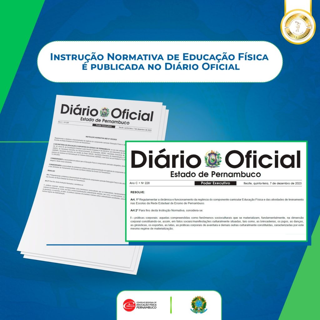 Na última semana, o Diário Oficial anunciou a publicação da aguardada Instrução Normativa de Educação Física. A última divulgação do documento ocorreu há 21 anos. O feito é fruto de dedicação e cobrança da Categoria. A Câmara de Educação Física Escolar do CREF12/PE participou ativamente enviando sugestões.