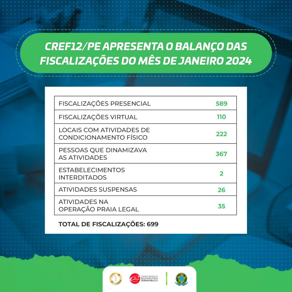 Confira o balanço do mês de janeiro do Setor de Atendimento e do Departamento de Orientação e Fiscalização do CREF12/PE.
