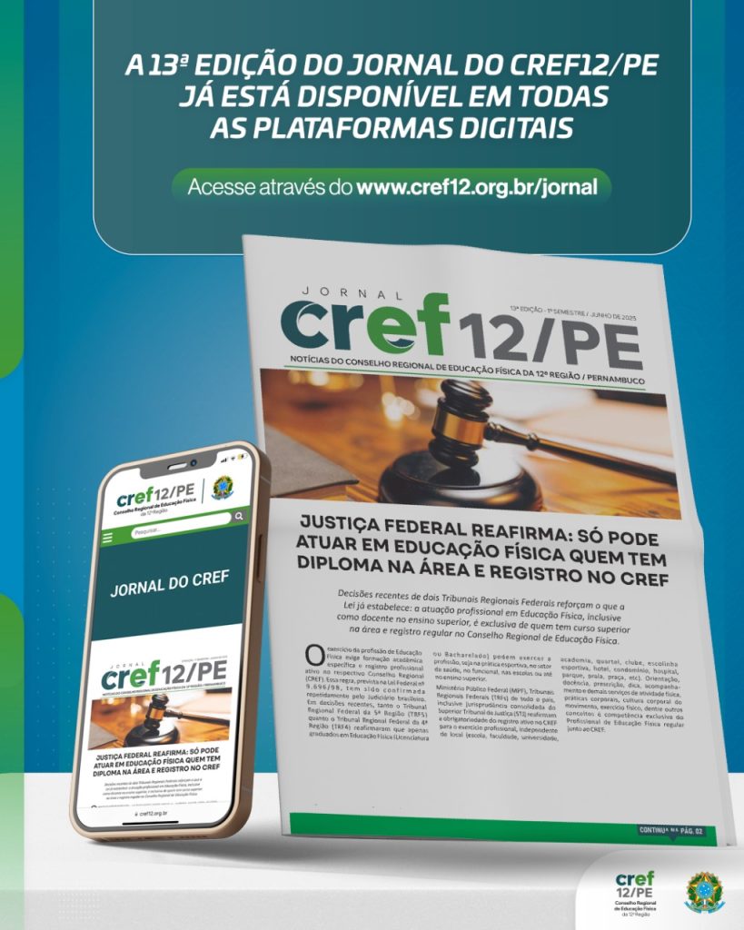 A 13ª edição do Jornal do CREF12/PE já está disponível em nosso site com as novidades e notícias que marcaram o 1º semestre de 2025.
